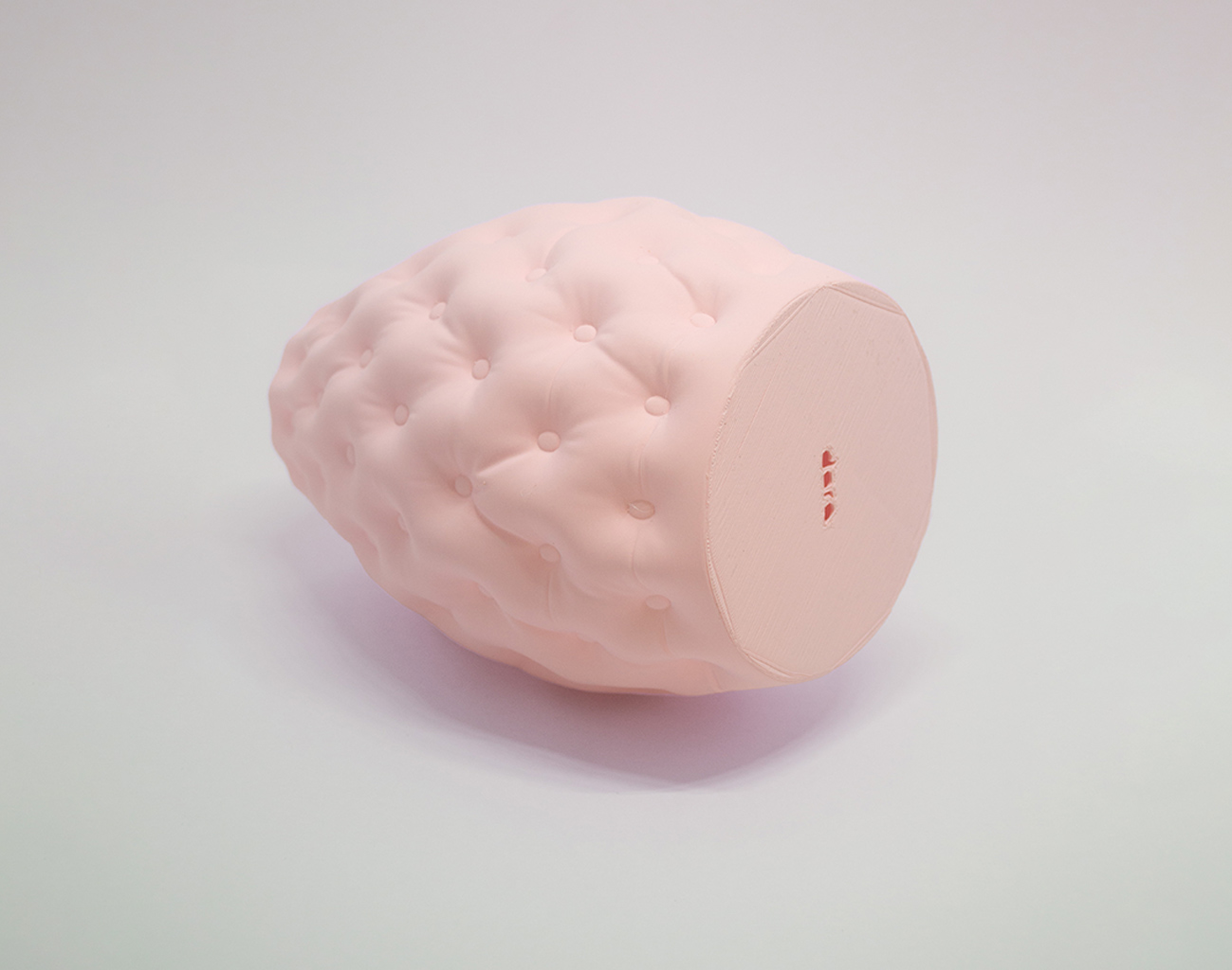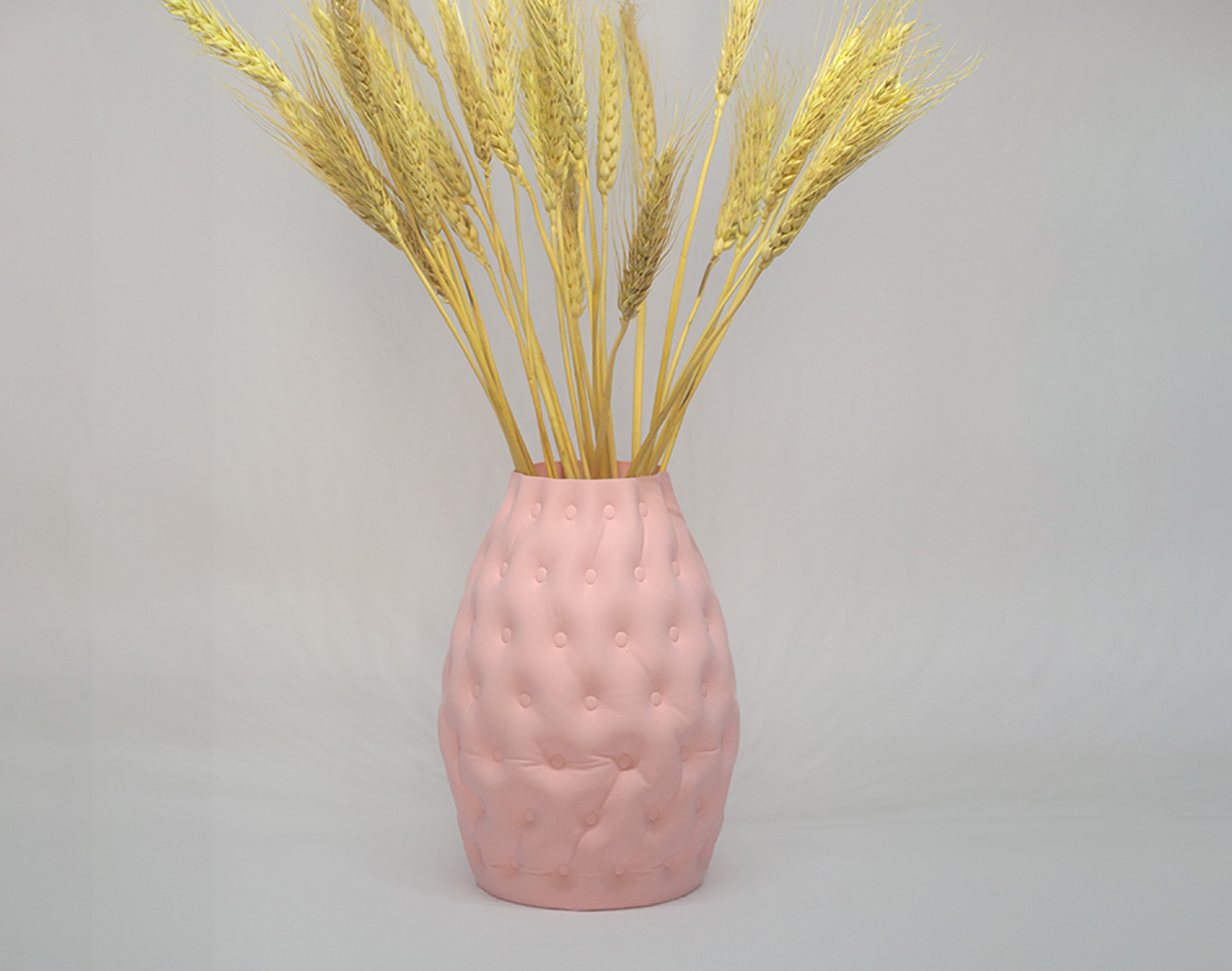 This modern 3D printed vase features unique button tufting that will add flair to any room. With its sleek and contemporary design, it will make a stunning centerpiece for your coffee table, mantel, or bookshelf. Made using cutting-edge 3D printing technology, each vase is crafted with precision and attention to detail. The button tufting is not only aesthetically pleasing but also provides a comfortable grip when holding the vase. Perfect for holding dry flowers, this vase will be a conversation starter and the perfect addition to your home décor collection.